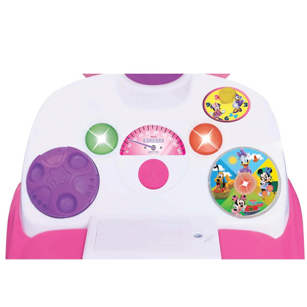 הצעצוע כולל מגוון כפתורים אינטראקטיביים: קולות של התנעת רכב, מנוע, צופר ומוזיקה נעימה, וגם כפתור עגול מסתובב שמשמיע בכל סיבוב צלילים שונים ואת מיני מאוס מדברת באנגלית – לחוויית משחק מהנה ומלמדת.