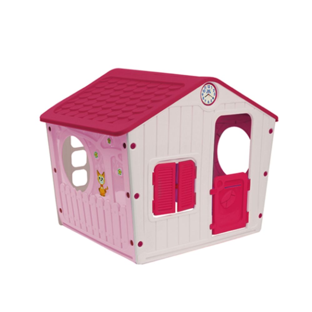 הבית, עשוי פלסטיק קשיח ועמיד, כולל חלונות ודלת כניסה, ומספק מקום רחב לפיקניק, מסיבות תה וכל משחק אפשרי.