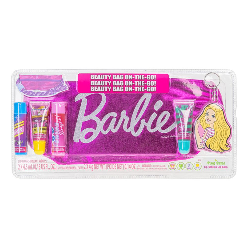 💄 ברבי – סט איפור חלומי לילדות עם פאוץ’ כתף אופנתי | שפתונים, גלוסים ומחזיק מפתחות 💖