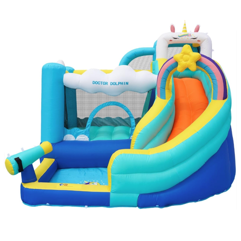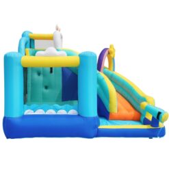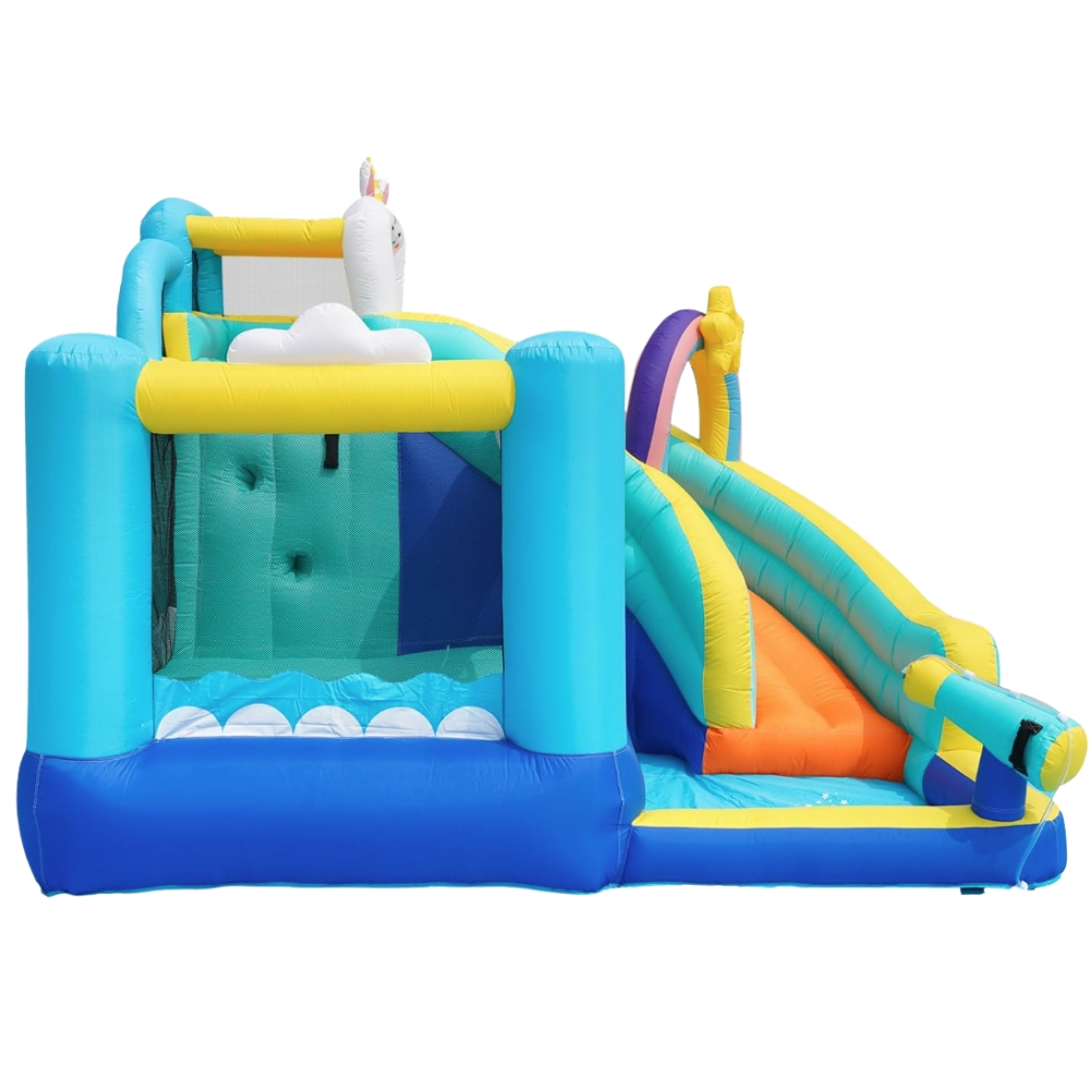 הפכו את החצר לפארק מים קסום! מתקן המים המתנפח בעיצוב חד-קרן צבעוני הוא הפתרון המושלם לשעות של הנאה, פעילות גופנית ורעננות.