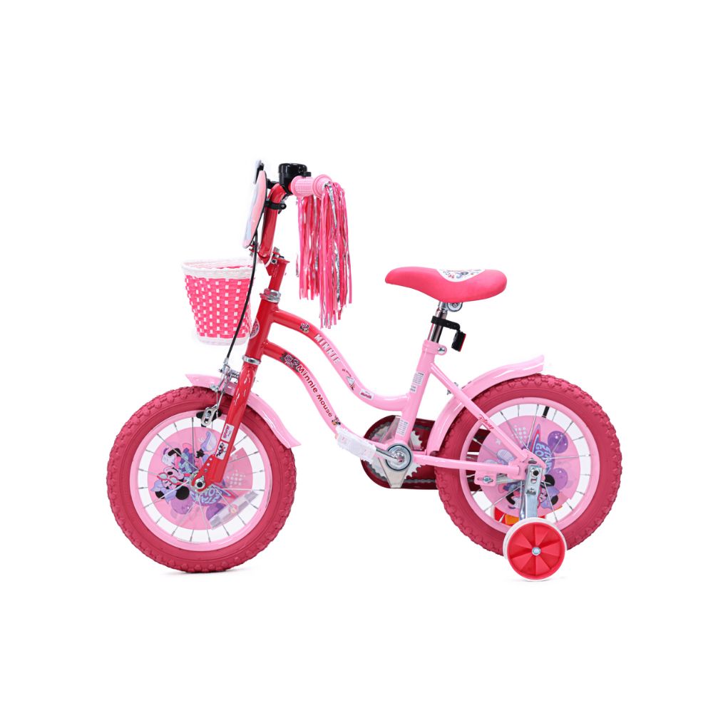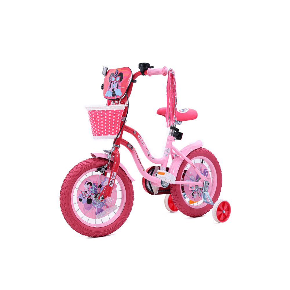 אופני ילדים מיני מאוס עם גלגלי עזר, בלמי יד ורגל, מושב מתכוונן, אור בגלגל, פעמון, מתקן לבקבוק, מגן שרשרת ועיצוב שובב של מיני מאוס.