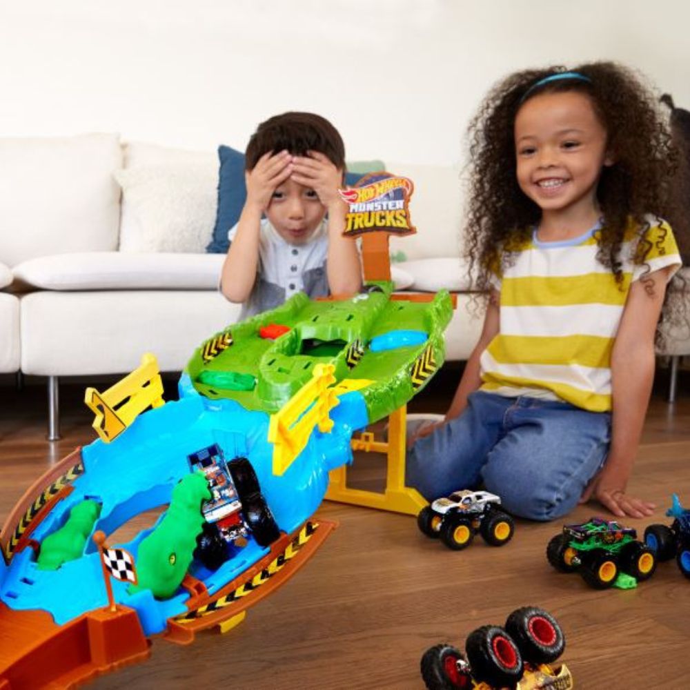 גלה מהיא משאית המפלצות המהירה והקשוחה ביותר כשהן מתחרות במסלול ה-Hot Wheels Monster Trucks Wreckin’ Raceway!