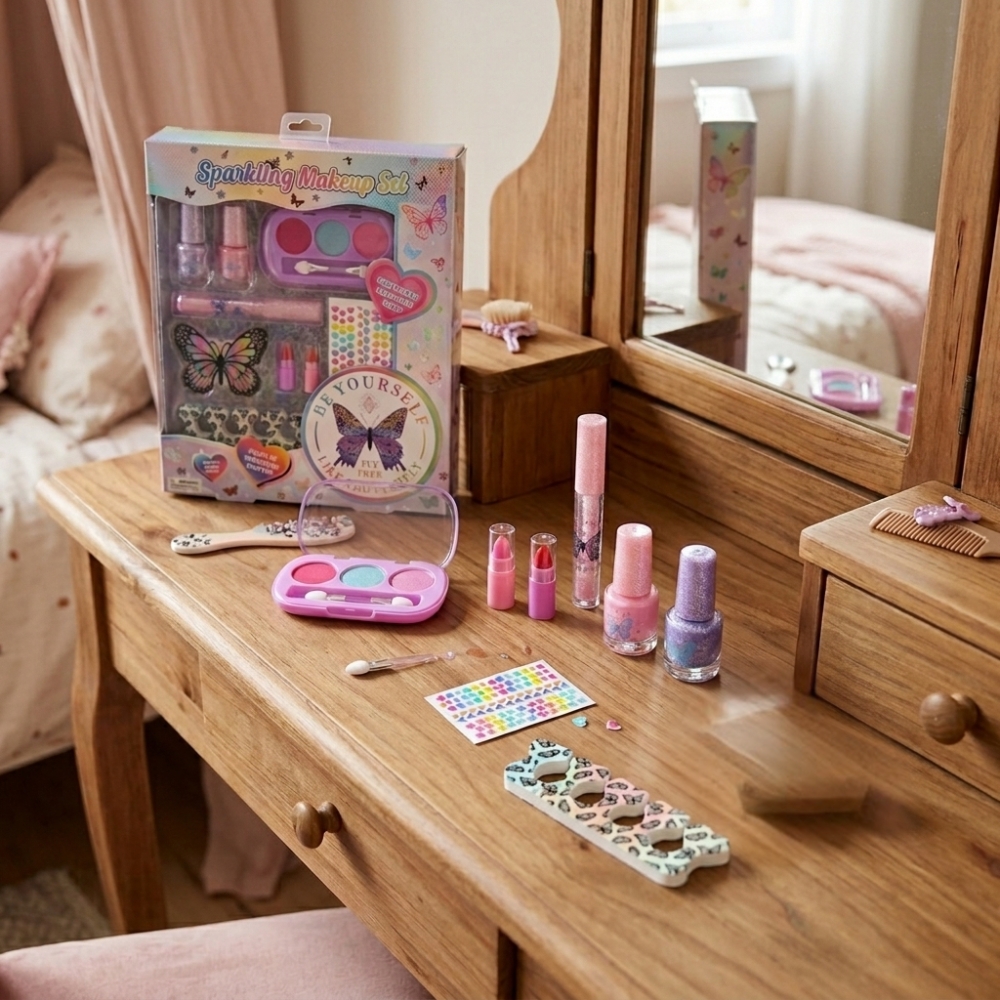 כל מוצרי הקוסמטיקה בערכה נשטפים בקלות במים, מה שמאפשר לפאשניסטיות הקטנות להתנסות בחופשיות ובלי דאגות.