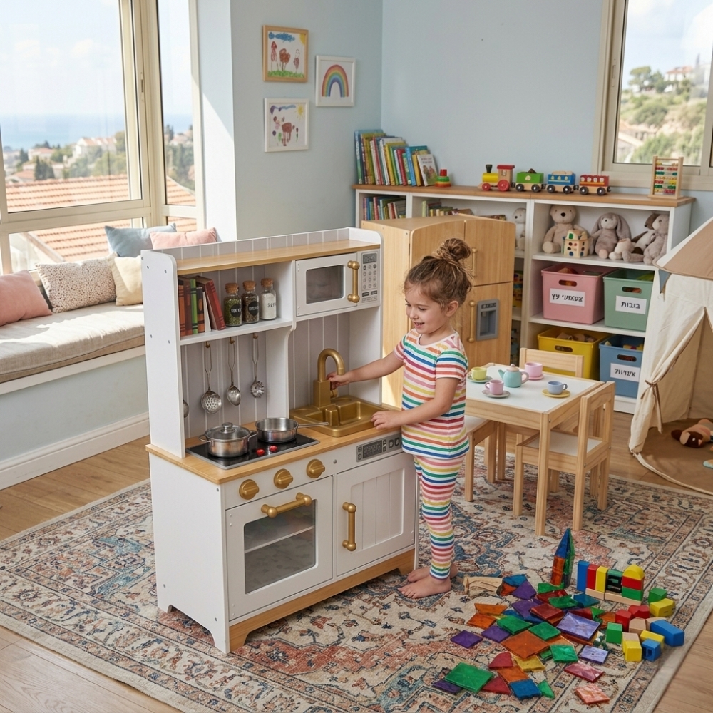 פיתוח מיומנויות: המשחק במטבח מעודד פיתוח מוטוריקה עדינה, כישורים חברתיים, סדר וארגון ומשחקי תפקידים מעשירים.
