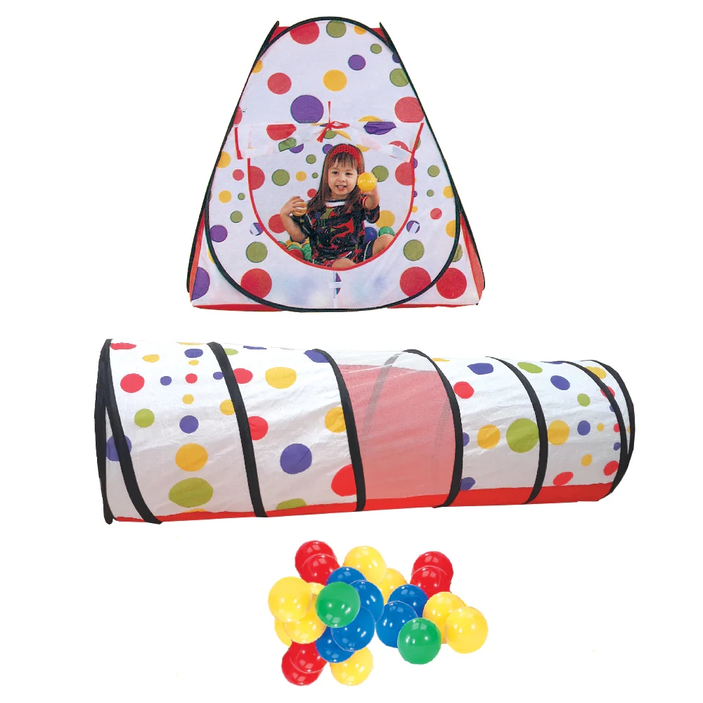 🌈 אוהל משחק משולב עם מנהרה ו-100 כדורי משחק צבעוניים