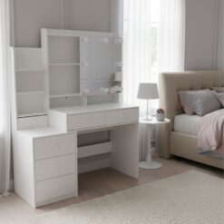 שידת איפור יוקרתית דגם ליבי עם מראה מוארת ותאורת LED חכמה