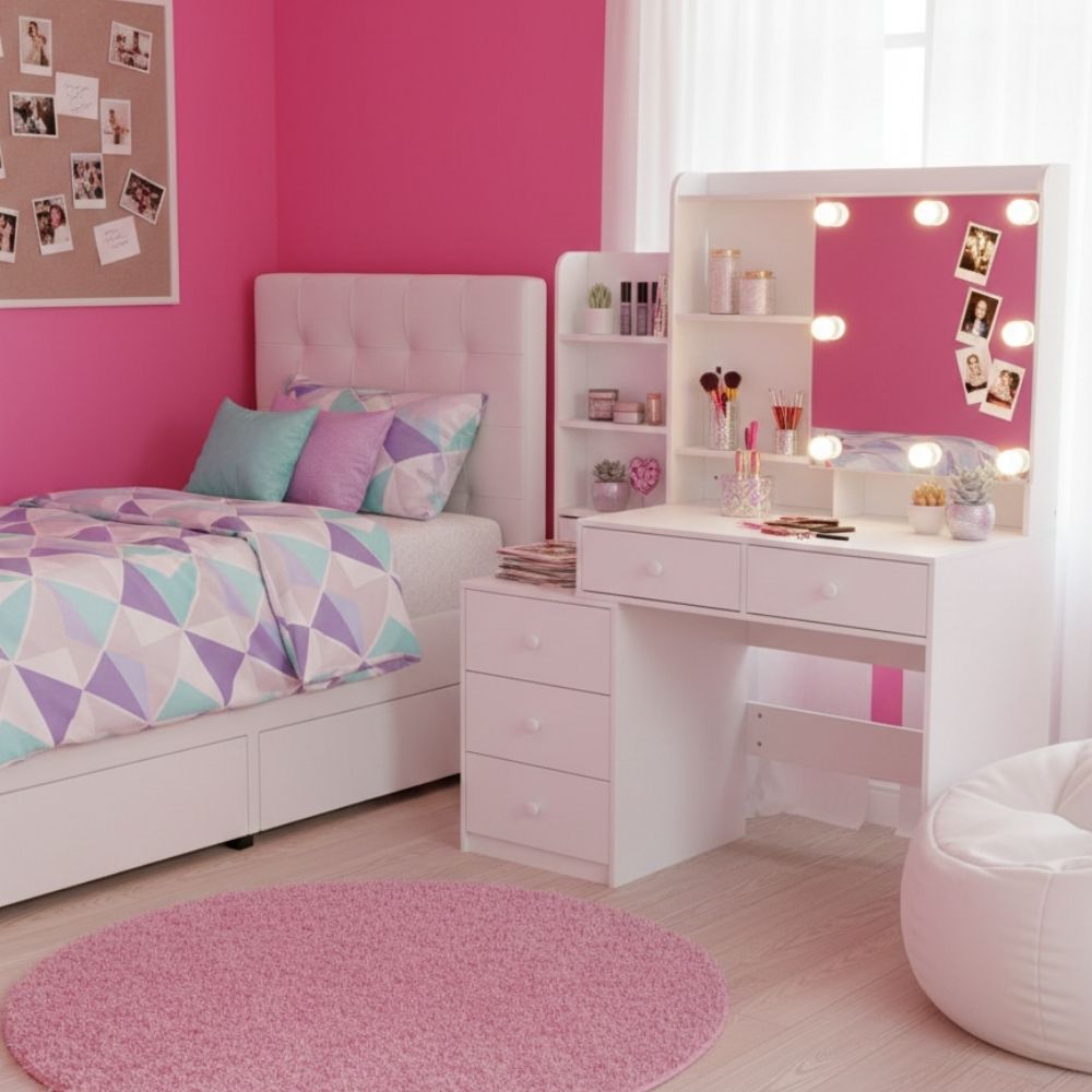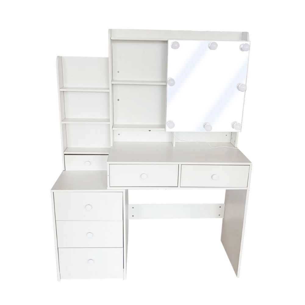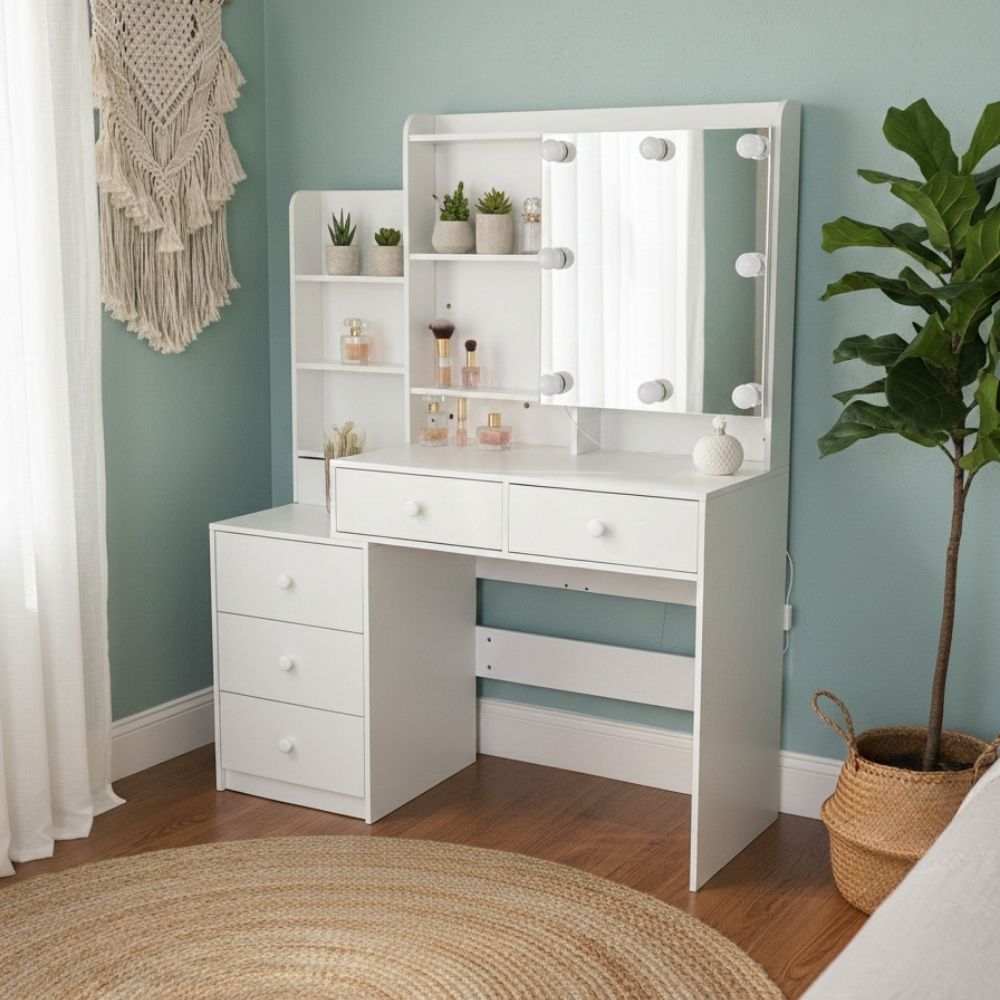 שידת איפור דגם ליבי בעיצוב פרימיום המשלבת מראה LED מוארת עם תאורה חכמה ב־3 גוונים בחיבור USB (לא כולל כבל)