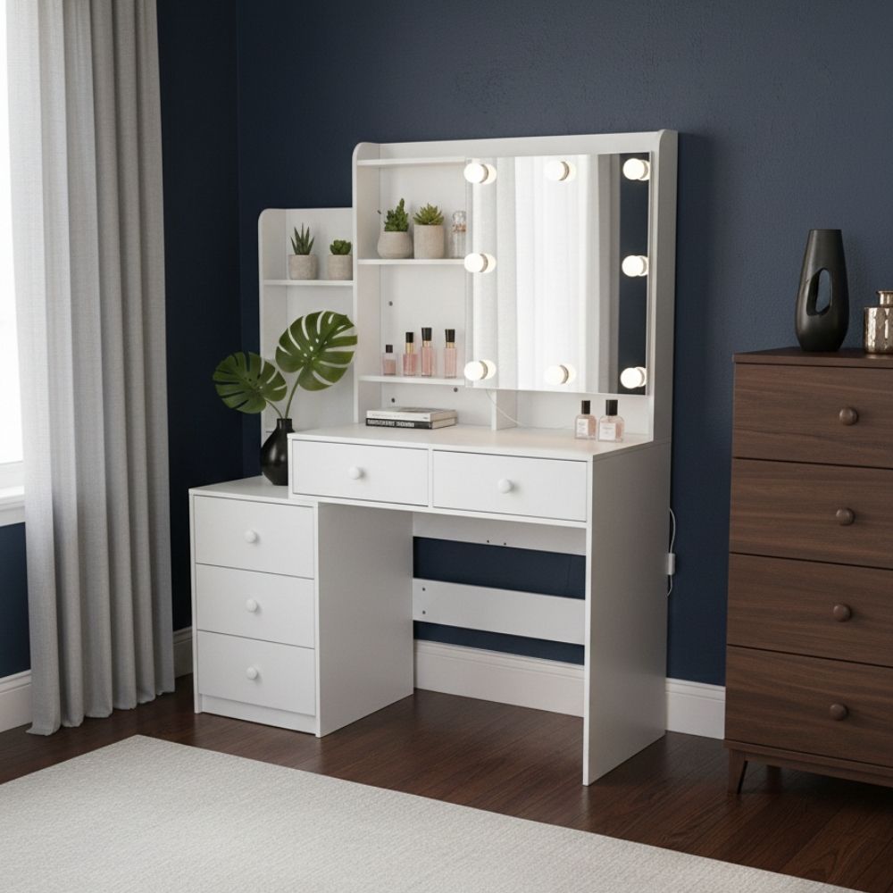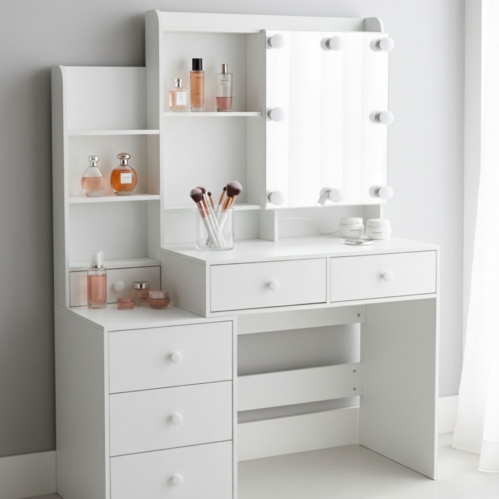 כוללת 5 מגירות אחסון מרווחות, מסילות שקטות  – לחוויית איפור אלגנטית, נוחה ומדויקת בכל יום.